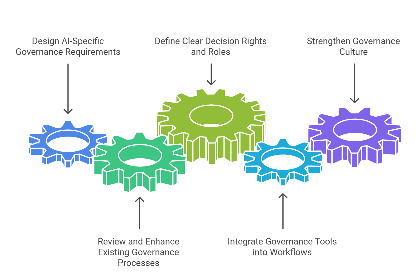 Embedding AI governance means integrating AI‑specific expectations directly into existing organisational structures and processes. Instead of creating parallel systems or burdensome new layers, governance becomes a natural extension of what teams already know - policies, risk frameworks, development cycles, and decision‑making routines